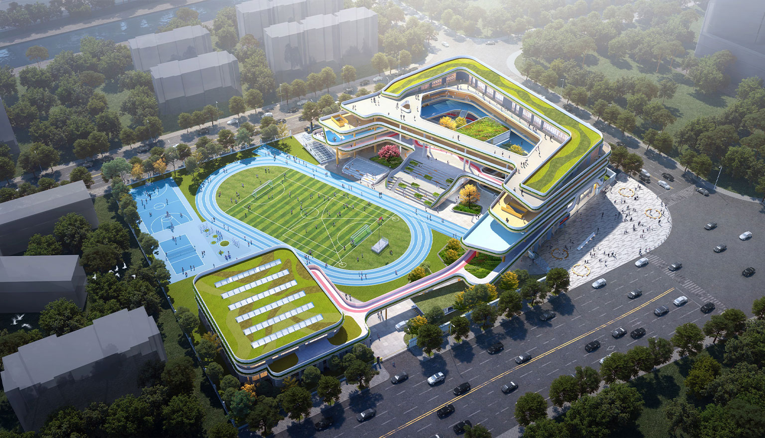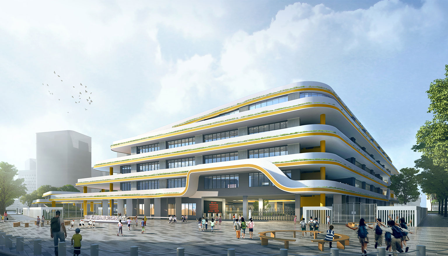 项目位于温州市浙南科技城,总用地面积18314平方米,总建筑面积35298平方米。项目为18班小学,为龙湾滨江社区配建的高标准教育配套。