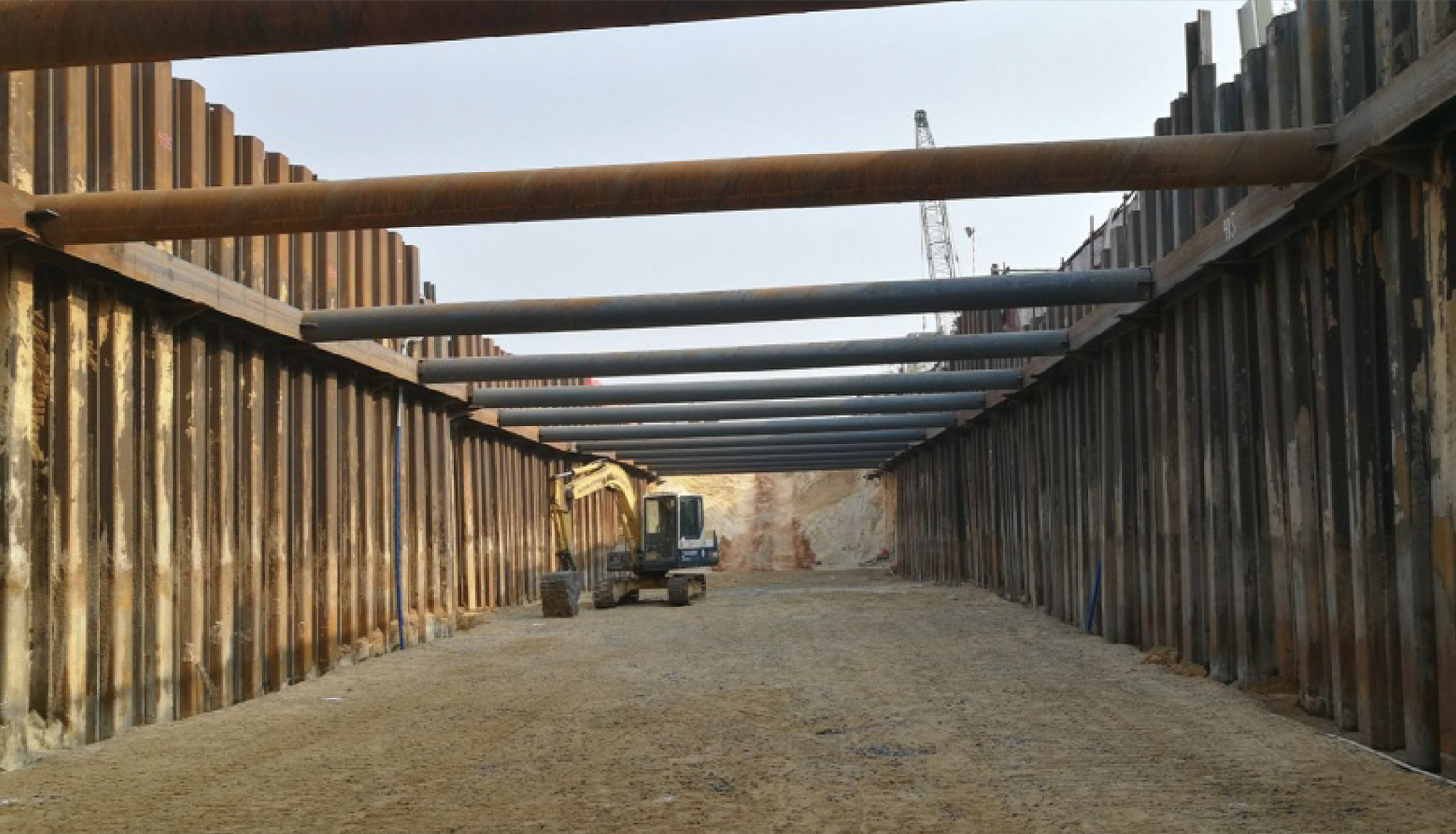 三亚市地下综合管廊包括胜利路综合管廊31千米和海榆东线南端综合管廊5千米,位于城市建成区道路下方,胜利路综合管廊基坑总面积约3.6万平方米,开挖深度约7.6米;海榆东线综合管廊基坑面积约5.7万平方米,开挖深度约6.9米。基坑支护采用坡率法、土钉墙和钢板桩+内支撑等方法。