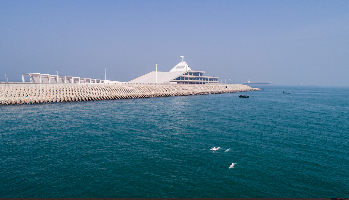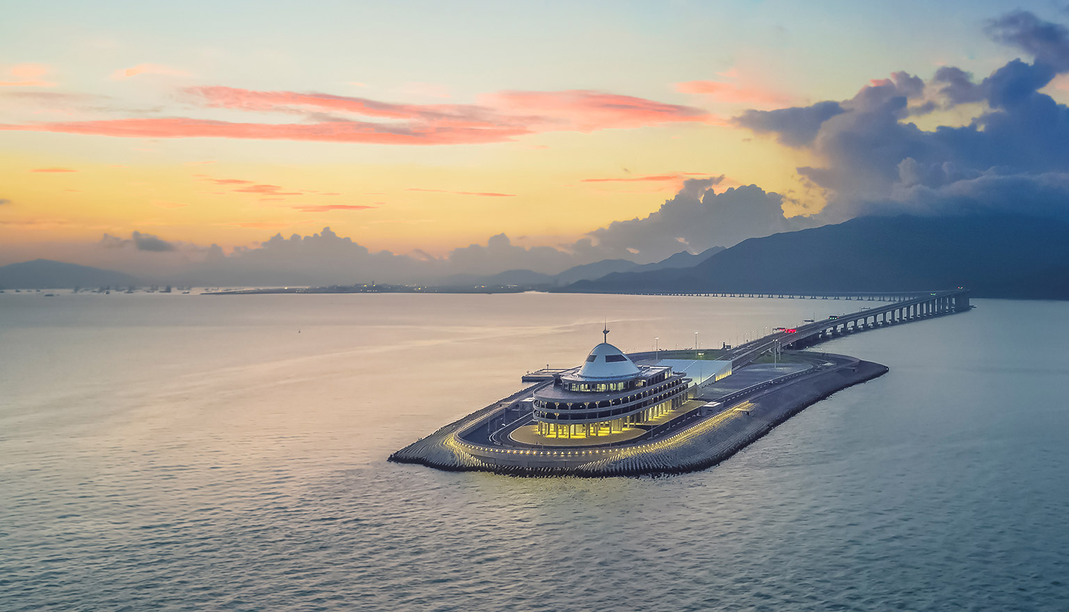 位于珠江口伶仃洋海域,是集桥、岛、隧为一体的大型跨海通道。沉管隧道长6.7公里,东、西人工岛及岛上建筑是桥隧转换和跨海通道运维的重要基础设施,东西人工岛岛长625米,每岛面积约10万平方米;两岛上特高级重要公共建筑约10万平方米。工厂法沉管预制厂一座,深浅坞最大蓄水面积约为13万平方米,厂房面积2.7万平方米。珠澳口岸人工岛新建人工岛面积约210万平方米,护岸总长约6100米。