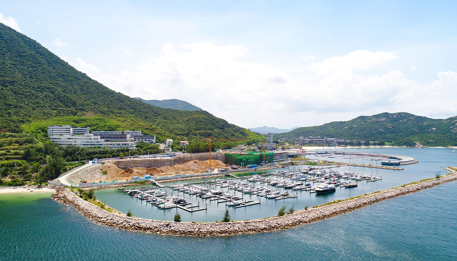 建设会所大楼、全封闭的会员公寓、800多米长的防波堤、275个游艇泊位、400个干船仓、游艇维护车间等设施。