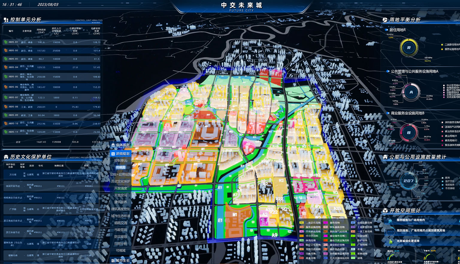 项目位于浙江宁波,规模17平方公里,基于未来城项目范围搭建了城市信息模型(CIM),开发了城市蓝图、建设管理、智慧招商、运营服务、生态宜居和辅助决策六大智慧应用,形成大屏展示和WEB管理两端使用工具,为项目建设招商和运营管理提供了有效的数字空间载体。