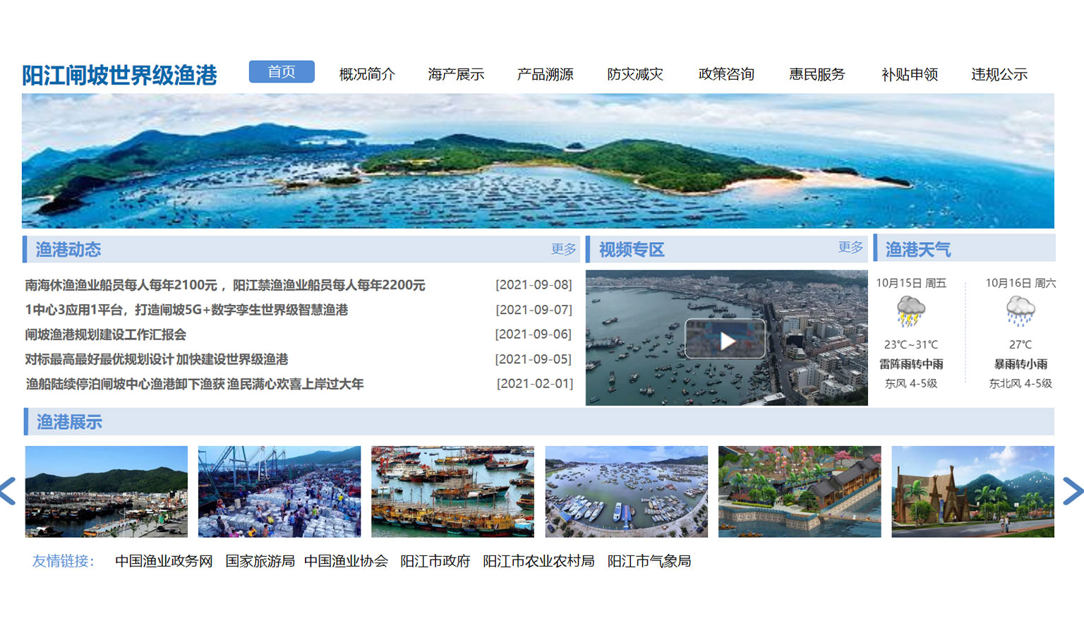 项目位于广东省阳江市闸坡渔港,应用物联网、云计算、人工智能、大数据等新一代信息技术,构建服务渔港管理部门、渔船渔民和社会公众的“一支撑、一中枢、多应用”的智慧渔港管理平台。涵盖渔港生产管理、渔船动态监管、应急指挥、公共服务等多元应用,切实提高闸坡渔港生产管理效率与公共服务水平。